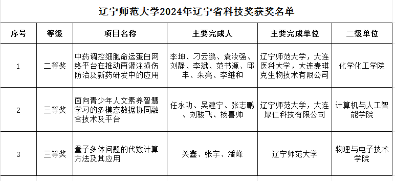 近日,辽宁省人民政府发布了2024年度辽宁省科学技术奖励的决定,我校作为第一完成单位有3项成果获奖,其中二等奖1项、三等奖2项。
